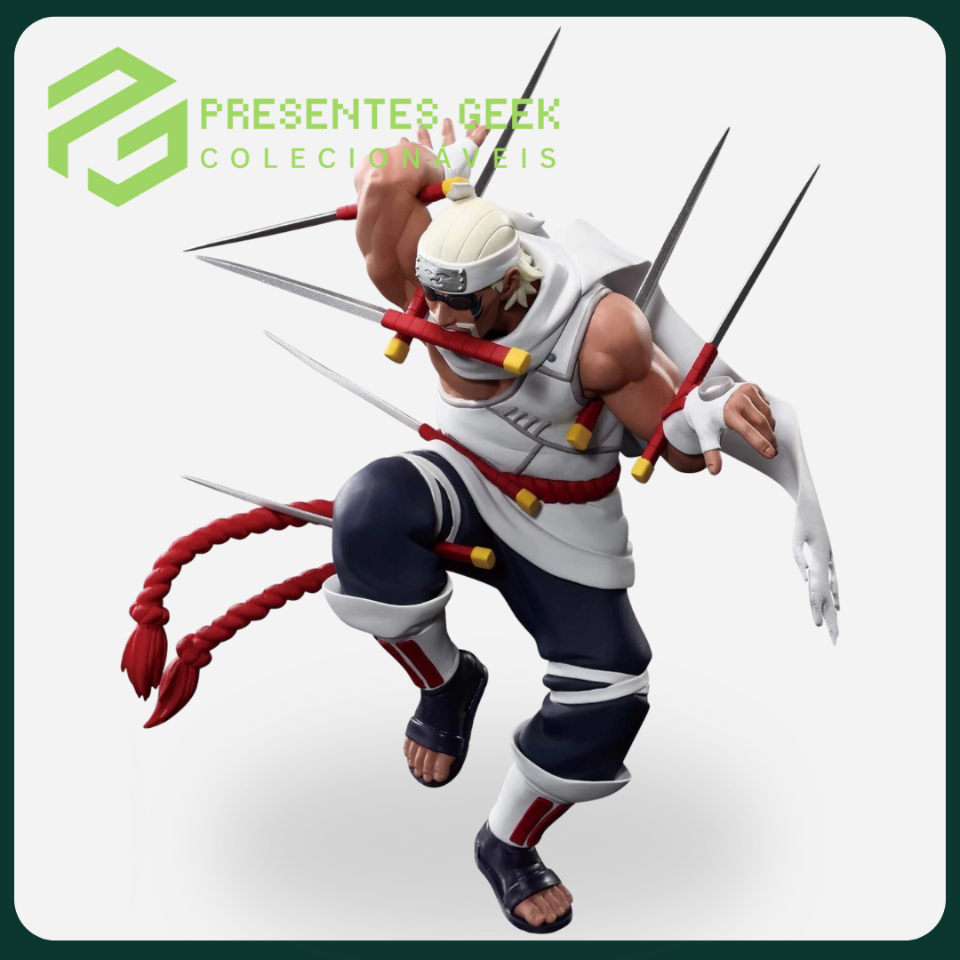 • Detalhes Insanos: Escultura precisa das tatuagens, dos óculos escuros e, claro, das múltiplas lâminas posicionadas nas articulações, fiel ao anime Naruto Shippuden.